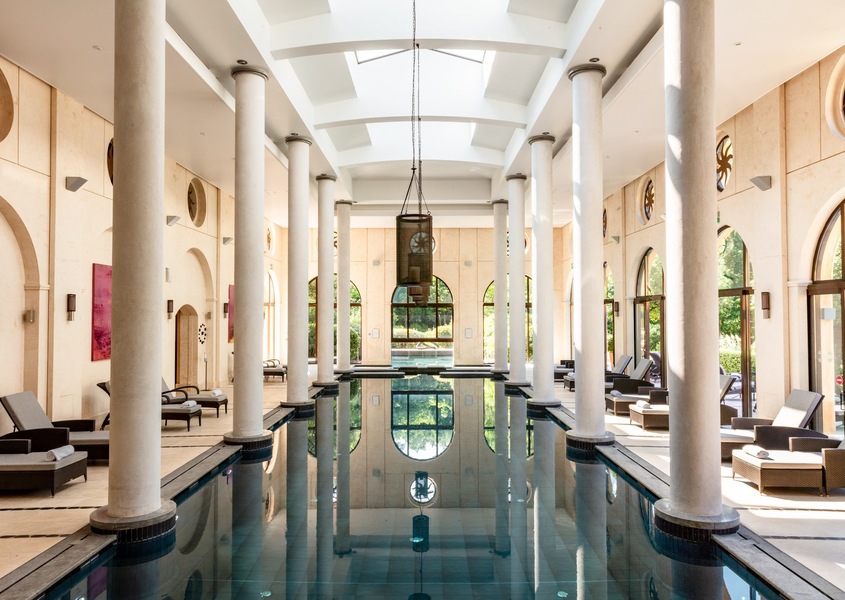 Those who use Caudalie products know the magic of the French skincare brand, which originated at Château Smith Haut Lafitte in Bordeaux. Wellness-inclined travelers can stay in one of the mansion’s rooms or suites, designed with antique furnishings and a rustic countryside charm. The highlight of the hotel is its Vinothérapie Spa, which incorporates local hot springs. The treatments are anti-aging and anti-oxidant focused, just like the brand itself, and there’s also an outdoor pool, a gym, yoga classes, tennis, and forest bathing available. The icing on the cake is the property’s two-Michelin star restaurant La Grand’Vigne, so you’ll be both well-rested and well-fed.