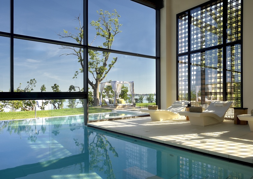 Right in the city and yet relaxingly removed, the JW Marriott Venice Resort and Spa is located on the private island of Isola delle Rose and features its own water shuttle. The hotel is a retreat unto itself, with lush gardens, relaxing pools, and an expansive spa that has to be seen to be believed. The rooms and suites are contemporary, with views of the water and Venice, and there are several restaurants on-site if you prefer not to head into the city’s busy center. Inside the JW Venice Spa, you’ll find a hammam, sauna, vitality pool, and a selection of body and face treatments that focus on well-being and detox.