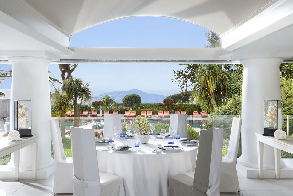 Since it’s Italy, there’s no calorie and carb restriction or alcohol avoidance here – aperitivo hour is soundtracked by a pianist in the stylish cream lounge, and there’s a two-Michelin-starred restaurant to head to for more indulgence afterwards. Down by the water, the palace’s iconic Il Riccio beach club has the island’s most extensive seafood selection and a majolica-tiled room dedicated to desserts. – CL