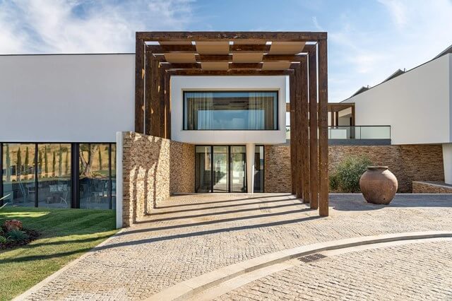 No dia seguinte, a tranquilidade que paira no Octant Évora não é diferente. O amanhecer é silencioso e o mote do grupo Octant – “A new latitude of freedom” – parece aqui assentar que nem uma luva. Do quarto vê-se a planície alentejana, ao fundo, e mais perto está logo o jardim e as piscinas. Não deixamos de notar a delicadeza arquitetónica da composição exterior: a vegetação, as piscinas, o restaurante, todos eles convivem em perfeita harmonia no que toca à organização espacial. O hotel funciona em formato de villas ou quartos – no total, há 16 do primeiro tipo e 56 do segundo – e todos eles têm vistas para a natureza.